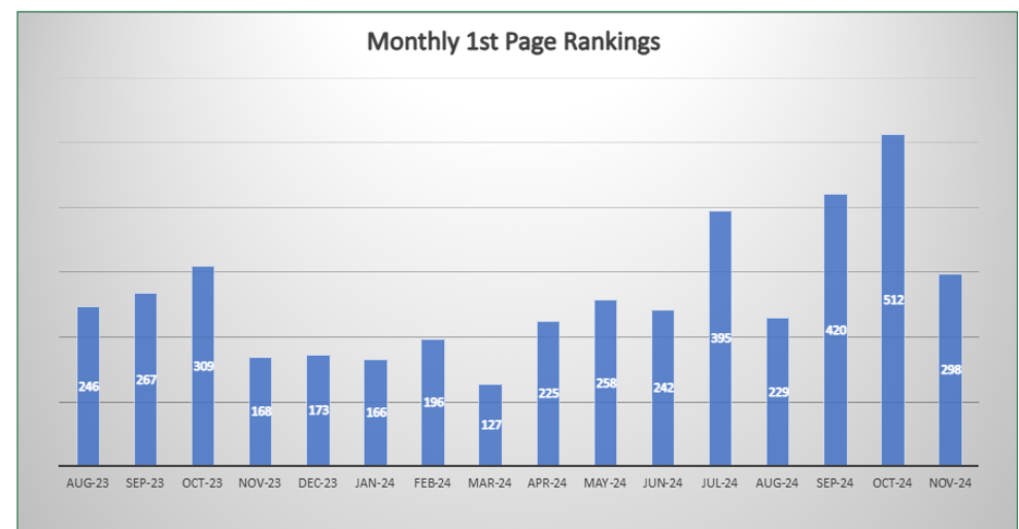 - We achieved 512 first-page rankings one month, the highest number to date.